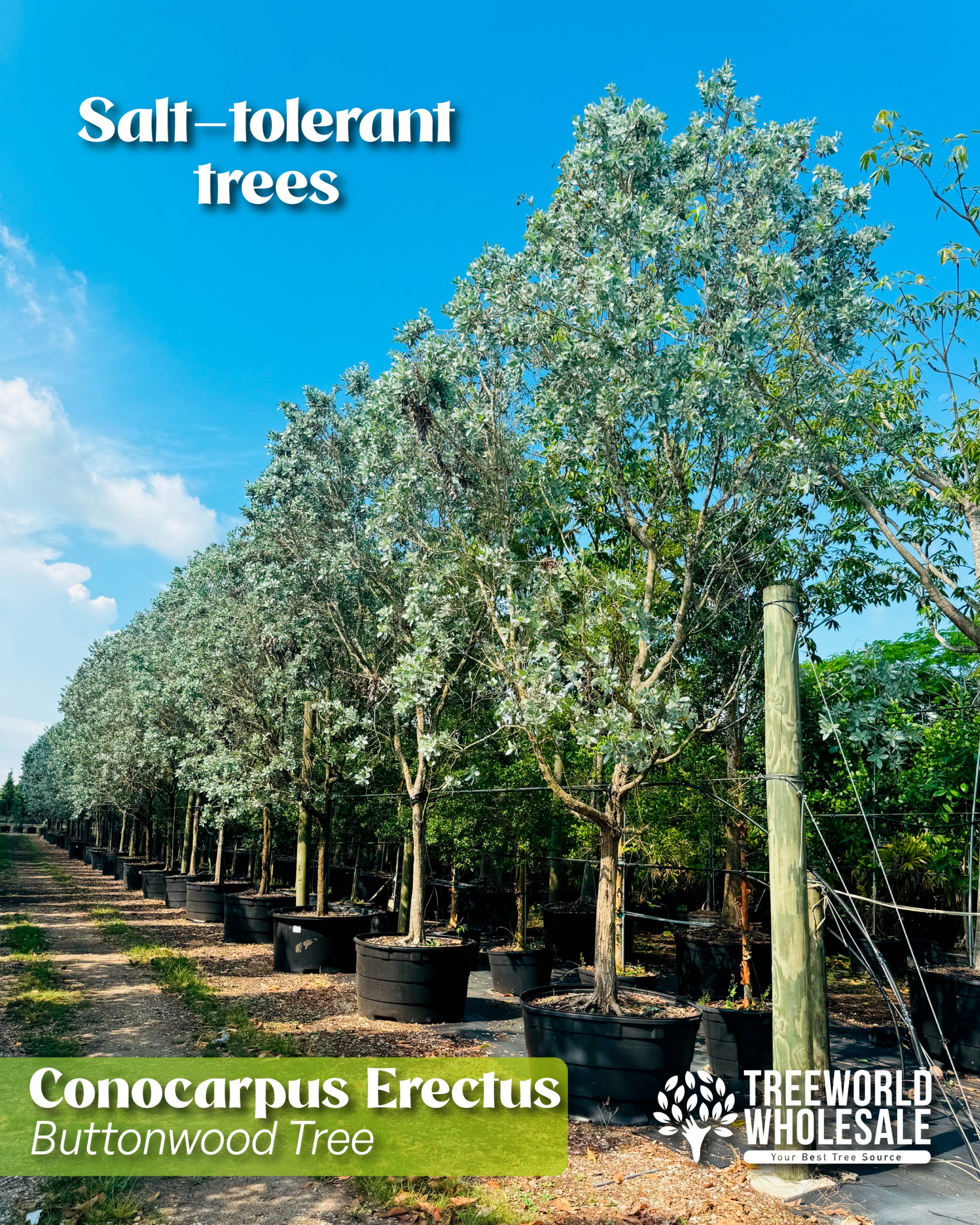 Another salt-tolerant option, the Southern Live Oak (Quercus virginiana), thrives in sandy, saline soils and is commonly found along the southeastern coast of the United States. Moreover, the native Clusia rosea (Pitcha apple) and the kamani tree (Calpohyllum inophyllum) are the most salt-tolerant options. For more information and additional options, please visit our tree section.