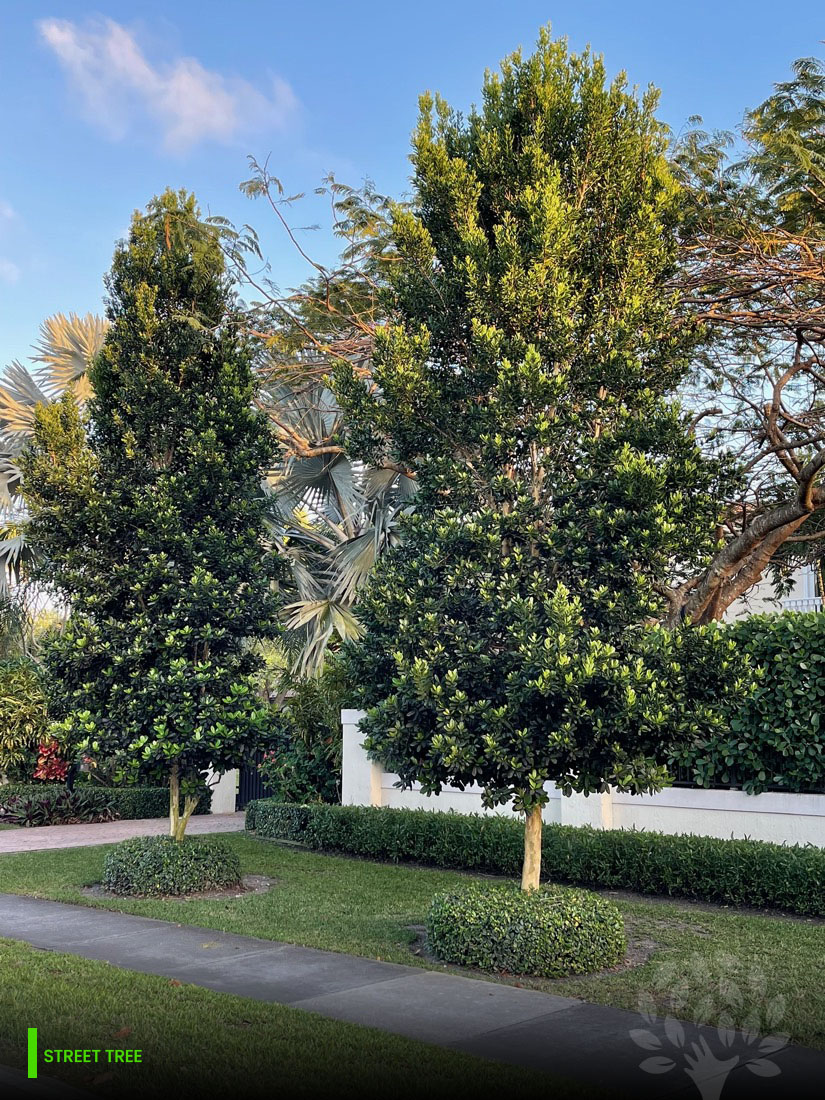 Nonetheless, the tree itself has countless landscape applications! As a backyard tree, street tree, open public spaces and recently in South Florida to create screens of natural privacy hedges; grown with multiple trunks and branching to the ground to achieve the most density.