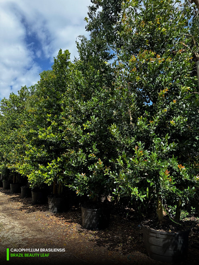 El Brazil Beautyleaf tiene un tronco cilíndrico que por lo general alcanza una altura de 45 pies o más, tiene una copa densa y redondeada. El grosor de la corteza es de color granate oscuro parduzco, con surcos finos, despegando pequeñas escamas rectangulares. La corteza interior es de color rojizo y aromatic, la cuál exhala un látex amarillo pegajoso. Las hojas son de color verde oscuro por encima y pálidas por debajo, elípticas, obovadas, lisa y brillante, con un tamañp de 2 – 4 1/2 x 1 1/2 – 2 1/2 pulgadas. Sus flores nacen en son de cerca de 1/2 pulgada de ancho. Las frutas son redondeadas, verde, marrón y de maduración de aproximadamente de 1 pulgada de diámetro con una sola semilla en su interior que se utilizan para la propagación y también sirven como alimento para los cerdos. El látex y la corteza tienen uso medicinal. La madera es de color marrón rojizo y se asemeja a la caoba teniendo usos similares. El árbol crece bien en sitios húmedos pero también en suelos arenosos y suelos de piedra caliza. En Paisajismo puede ser sembrado en varios sitios por su follaje perenne atractivo y flores vistosas; también es un buen árbol de sombra.