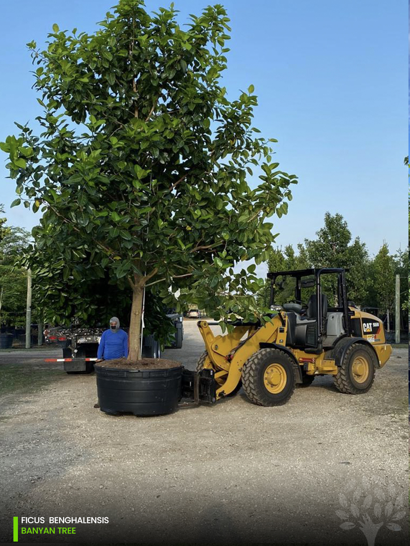 El Banyan Tree es considerado un árbol enorme en términos de altura y extensión, se dice que tiene el mayor toldo entre cualquier árbol en el mundo. Crece a una altura de 100 pies y la difusión masiva de sus extremidades y raíces de soporte llegan hasta los 300 pies. Comienza su vida como una epífita en un árbol huésped, donde sus semillas han sido depositadas previamente por los pájaros, cuando las raíces aéreas llegan al suelo golpean la raíz formando numerosos troncos nuevos separados pero conectado lo cual convierte el árbol en un pequeño bosque. La corona del árbol es irregular con denso follaje y las hojas son coriáceas, de forma ovalada, verdes brillantes, lisas arriba y abajo aterciopelada las cuales miden de 5 – 10 pulgadas de largo. Flores nacen en parejas, de color amarillo discreto y son polinizadas por avispas de la especialidad. Las frutas son del tamaño de una cereza, de color rosa a rojo, globoso, suave y comestible, que contiene numerosas semillas pequeñas que atraen a las aves que se encargan de dispersar las semillas. Toda la planta contienen un látex lechoso y en Asia el Banyan tienen numerosos usos medicinales y es considerado un árbol sagrado. Se reproduce por semillas o esquejes y crece en casi cualquier tipo de suelo, de seco a húmedo. En cultivo crece de mejor manera como una planta de contenedor debido a que se puede controlar su crecimiento, por su tamaño en el suelo se aconseja sólo cultivarlo en un gran parque o un jardín botánico. El árbol produce una cantidad considerable de deshecho.