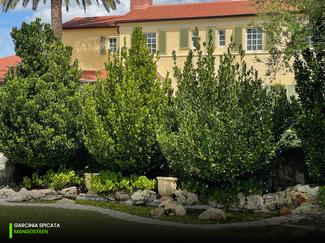 Garcinia Spicata (Mangosteen) is an ornamental tree. It is related to the purple Mangosteen (Garcinia mangostana) fruit tree. It is considered to bear the most delicious tropical fruits. The Mangosteen tree is native to South Asia. It is a moderately large evergreen tree that reaches 30 to 40 feet in height. Although, it is typically shorter because of its relatively slow growth rate. Moreover, it has a dense crown of entire, simple, opposite, upward pointing, evergreen leaves. The crown is elliptical to oblong in shape and bronze color when young. The crown turns a glossy dark green as it matures.