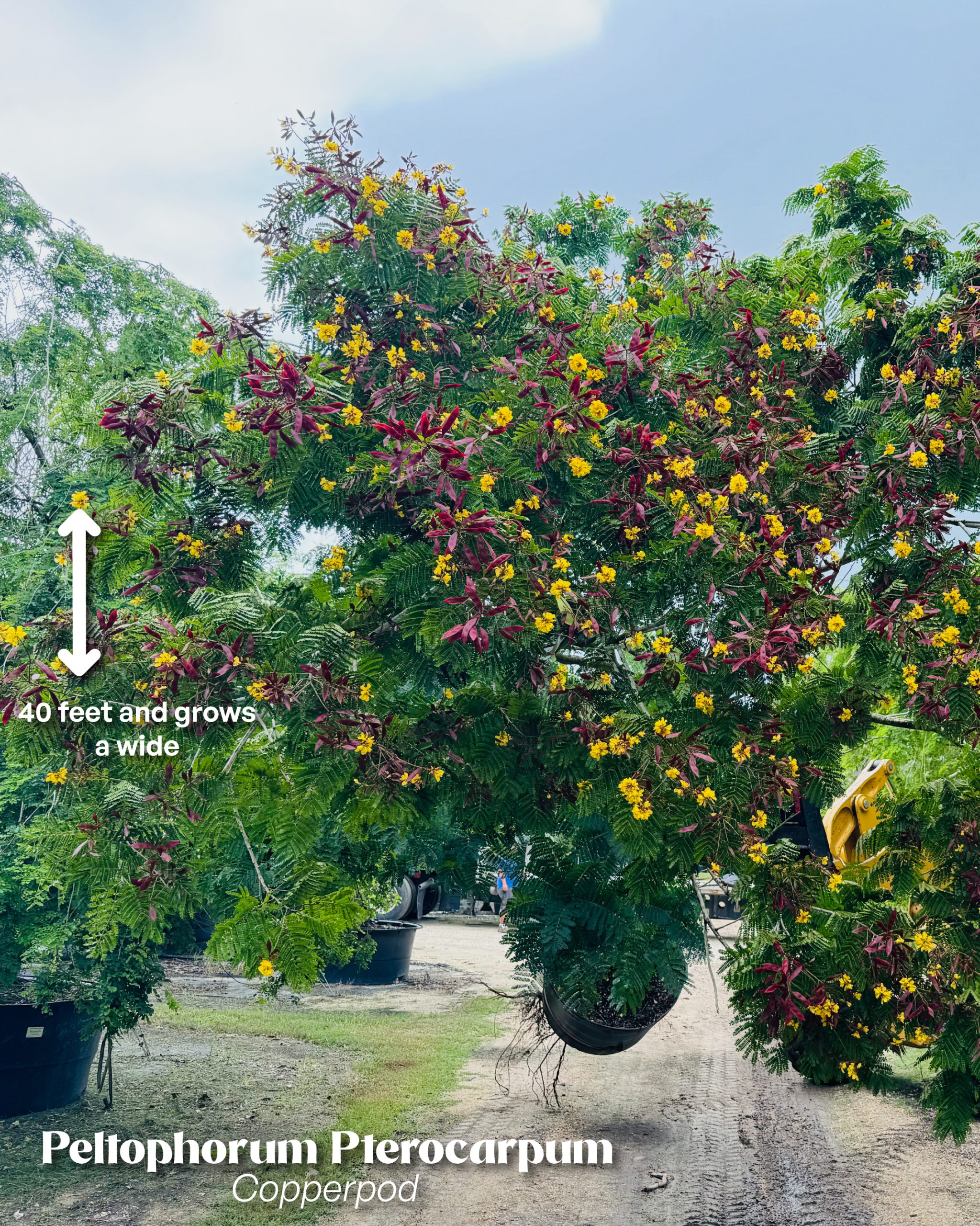 Also known as the Yellow Flame Tree, Peltophorum pterocarpum is a tropical showstopper that brings the perfect mix of drama, shade, and golden blooms to Florida landscapes.